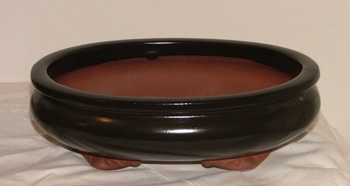 Frei aufrechte Bonsai stehen am häufigsten in ovalen und streng aufrechte Bäume in eckigen Schalen.
